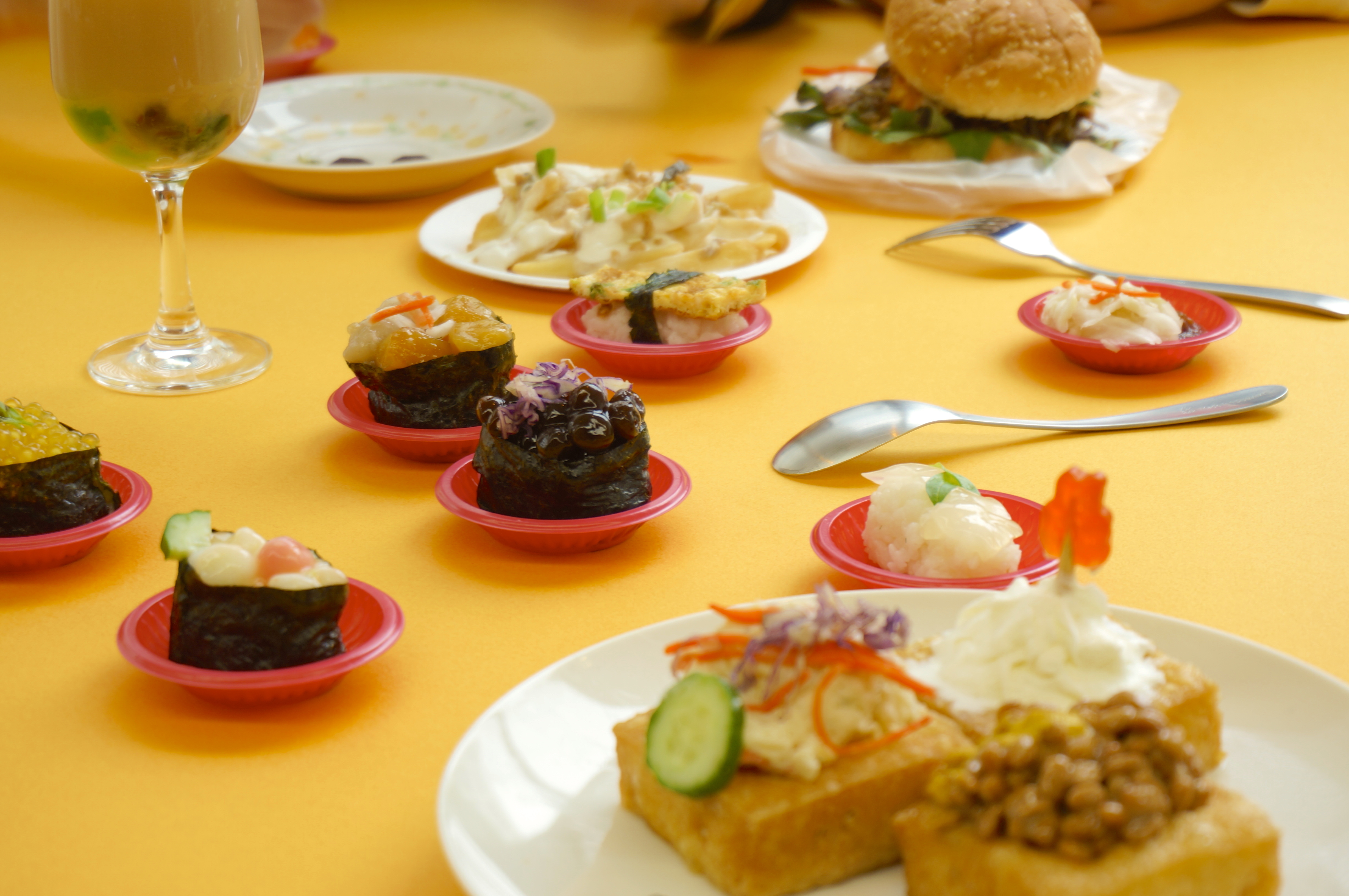 透過系列攝影,呈現異國食物與台灣食物融合的怪異感、衝突感。